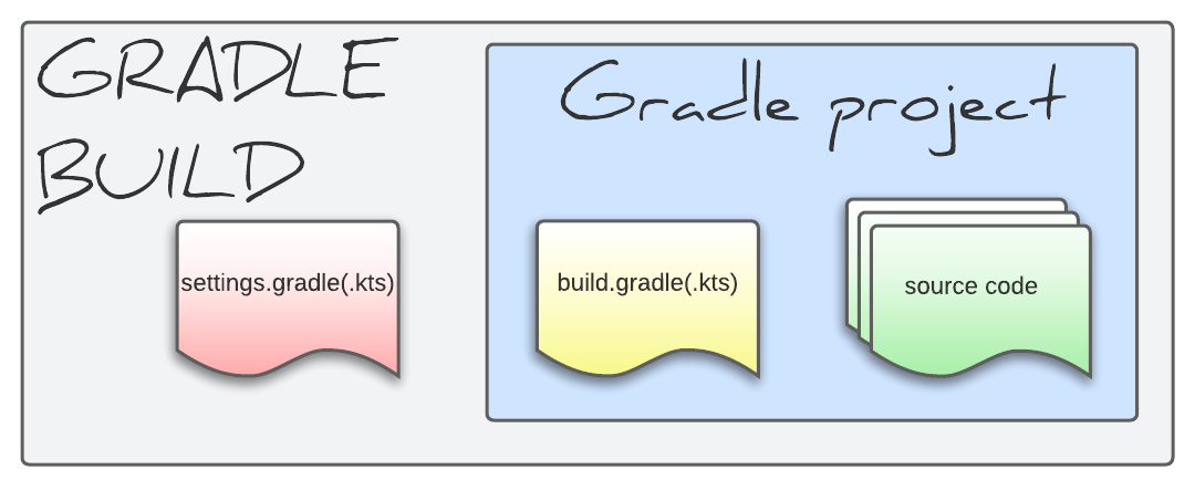 build.gradle(.kts) and source code representing the root project, which is equivalent to the project contained in a single-project build