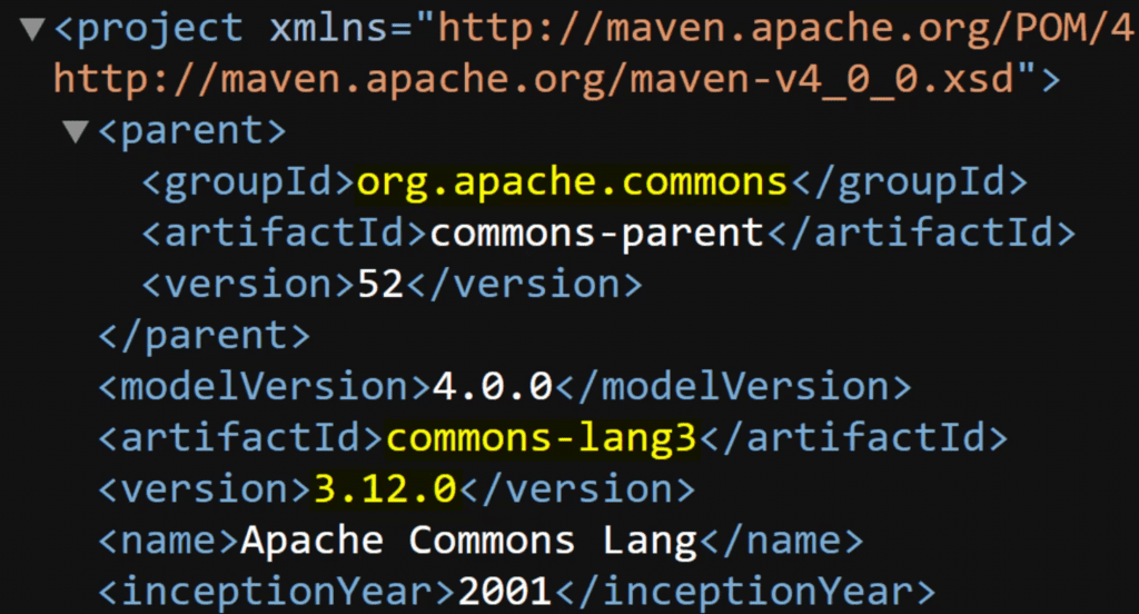 What you saw above is the string notation, which is just the group, name, and version separated by a colon e.g. "org.apache.commons:commons-lang3:3.12.0"