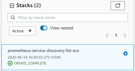 Awesome! So prometheus-ecs-discovery has gone off and queried the AWS API and discovered three ECS tasks, two of which have been written to ecs_file_sd.yml. Only two of the three targets were written to the file, because one didn't specify the required Dockerlabels.