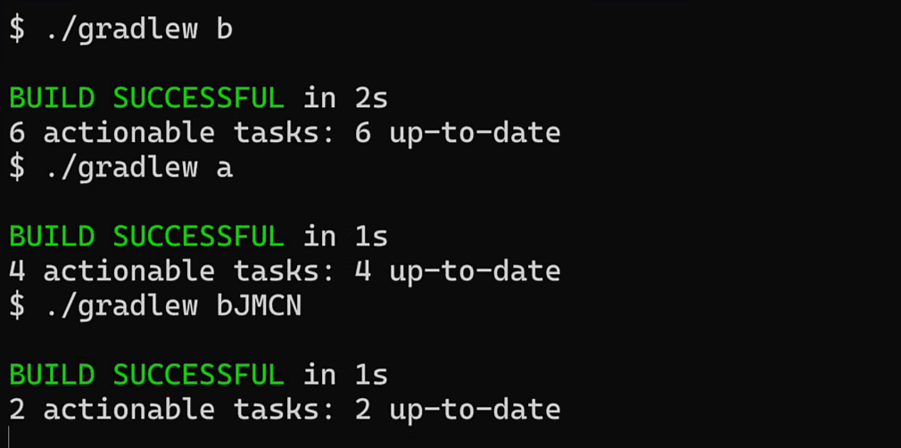 Use abbreviated task names to save typing when running Gradle tasks. You can shorten: