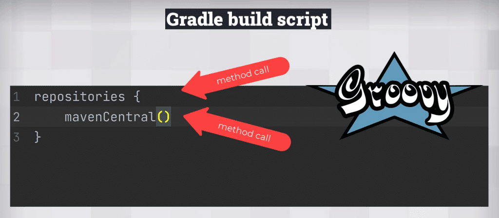 Gradle chose a code based build script. This means you configure a build by calling methods using the Groovy language, rather than using XML tags.