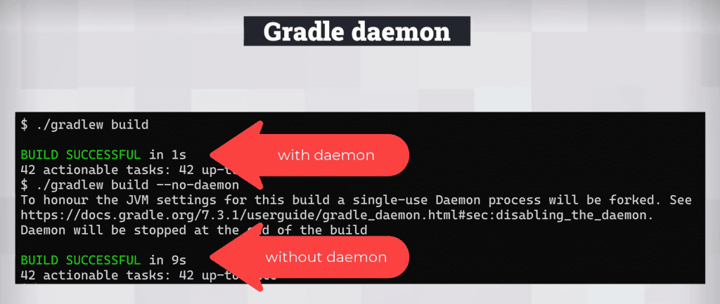Using Gradle gives the developer an improved experience over Maven when it comes to the grind of day-to-day work.